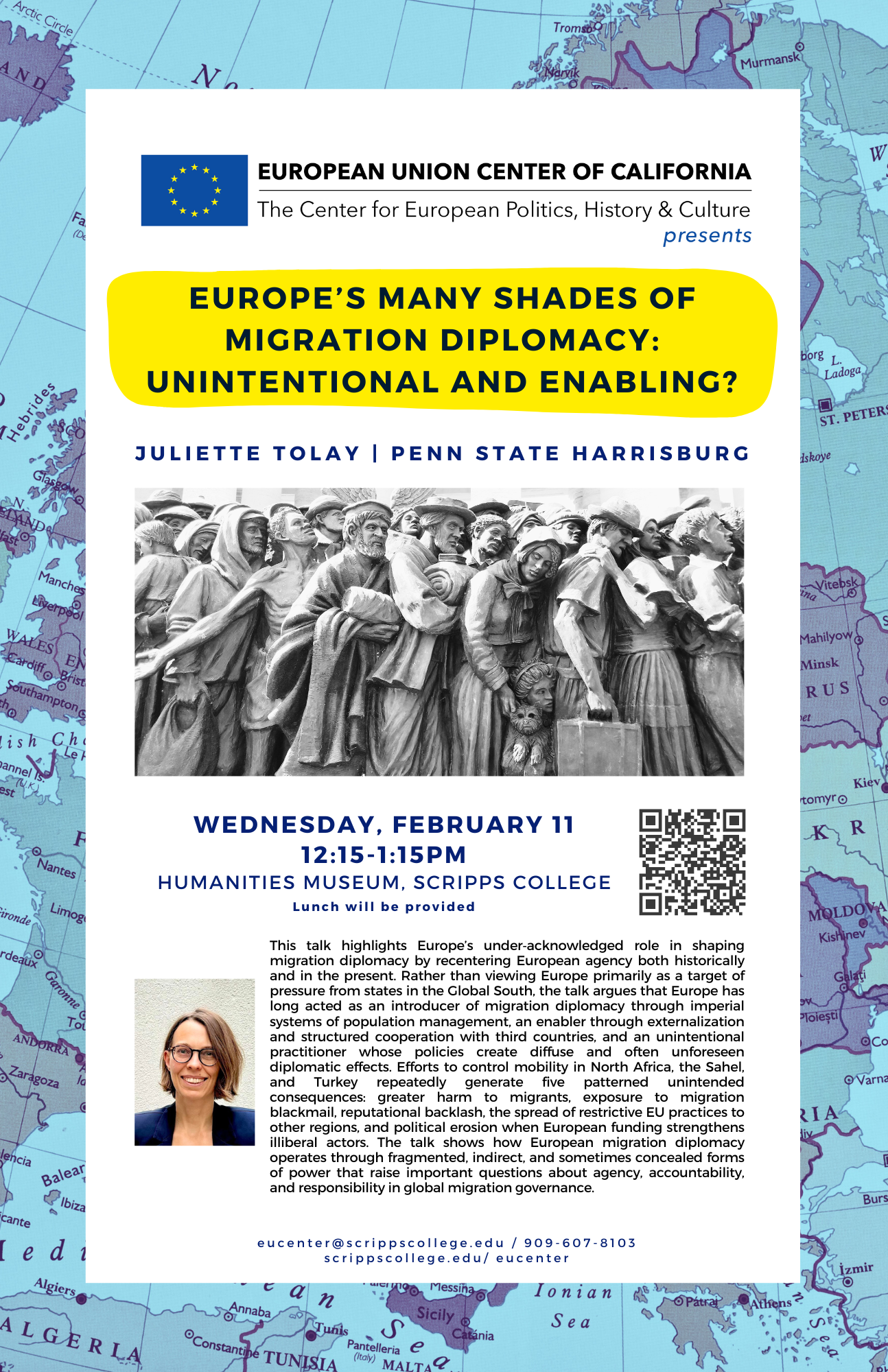 Humanities Museum (HUM 225)This talk highlights Europe’s under‑acknowledged role in shaping migration diplomacy by recentering European agency both historically and in the present. Rather than viewing Europe primarily as a target of pressure from states in the Global South, the talk argues that Europe has long acted as an introducer of migration diplomacy through imperial systems of population […]