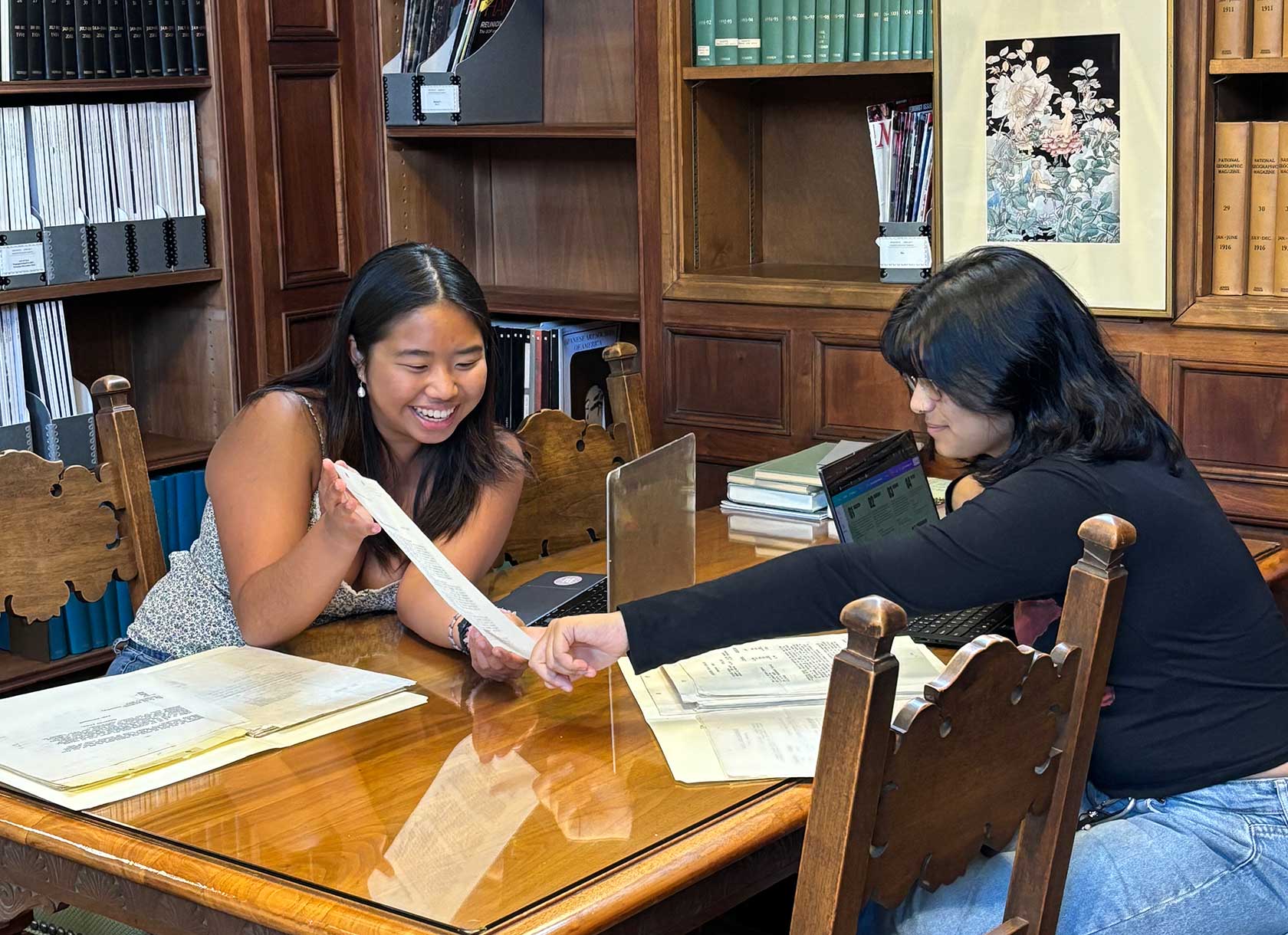 Scripps students begin and end their undergraduate journey at the Denison Library, entering and exiting through its famed east doors during Matriculation and Commencement. Donors like the Josephine Stedem Scripps Foundation, the Ellen Browning Scripps Foundation, and others, help preserve the historic library and its rare archives for ongoing faculty- and student-led research. For Teh and Verma, their experience in the archives has helped them challenged common assumptions.