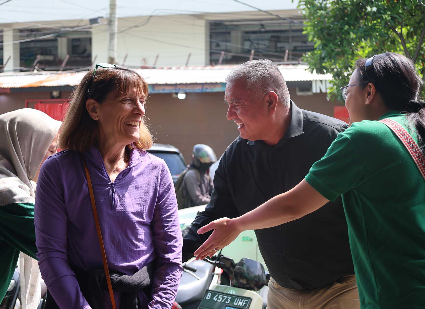 President Marcus-Newhall and Associate Vice President for Philanthropy Enrique Gonzalez-Salgado also visited the Penjaringan community in North Jakarta with the Wadah Foundation, founded by Djojohadikusumo’s mother, Anie, while in Indonesia. The foundation seeks to support and encourage growth through education, economic empowerment, and health services.