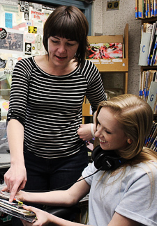For the past 20 years, Erica Tyron ’92 (right, with Riegle) has managed the radio station, serving as its full-time director/advisor.