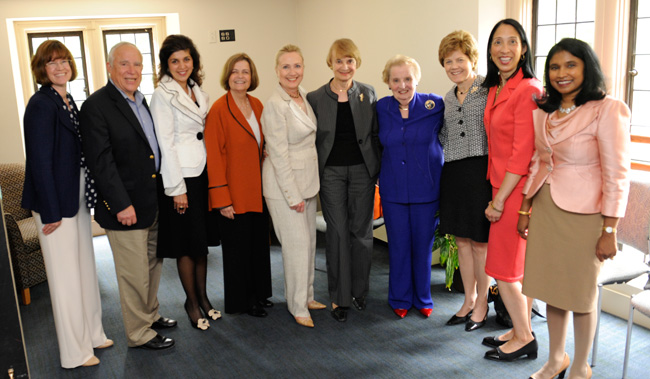President Lori Bettison-Varga meets with Secretary of State Hillary Rodham Clinton (center) and Madeleine Albright (fourth from right) during the Women in Public Service Institute held last week at Wellesley College.