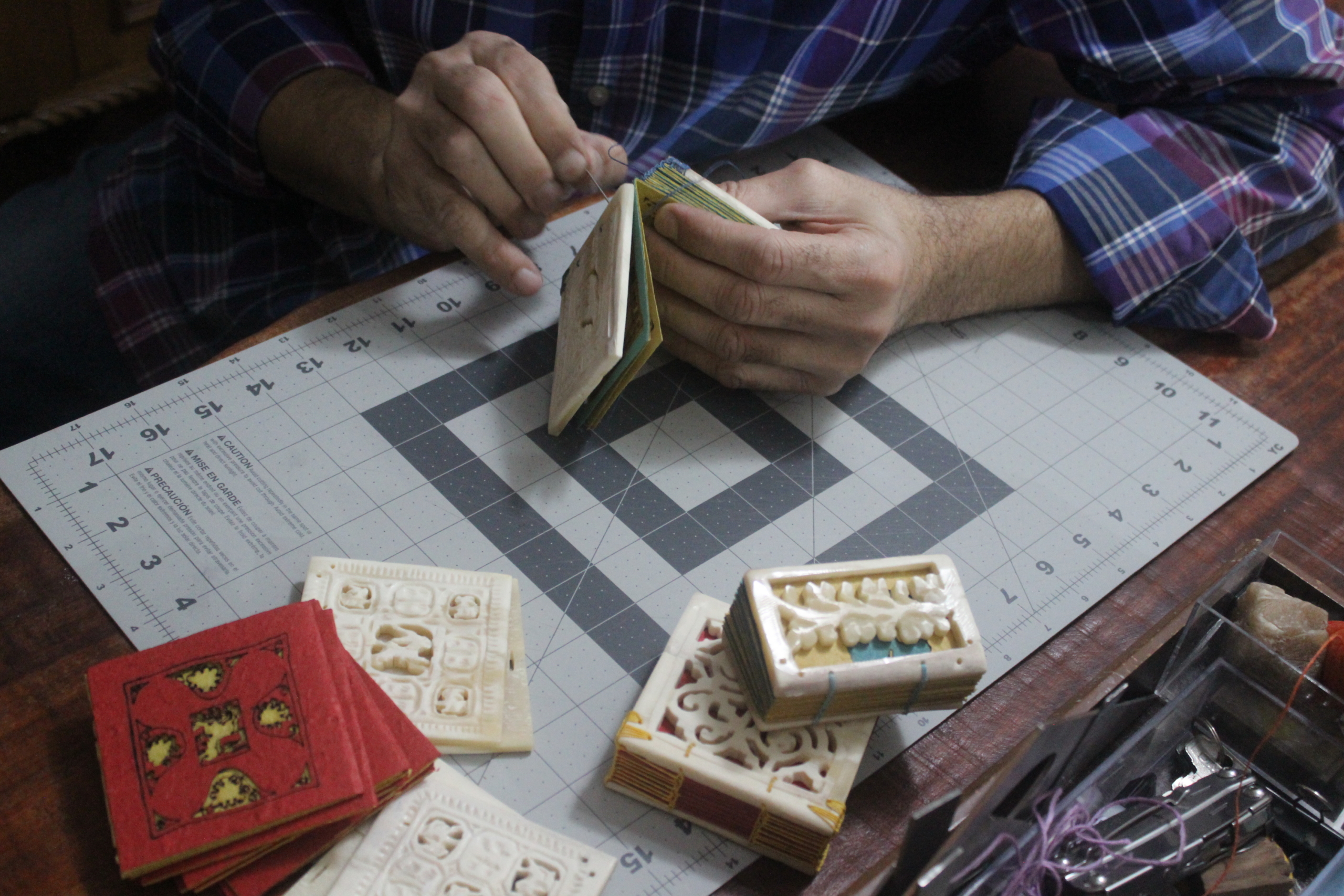 Islam Aly discusses the evolution of his book arts practice, from his early training as a student to development as a professional artist. He highlights how foundational studies in traditional bookbinding informed later experimentation with structure, materials, and concept. Through selected binding projects, Aly addresses key moments of transition and innovation, including the incorporation of new technologies and the development of artists’ books that engage with social justice concerns, reflecting his ongoing interest in expanding the artist’s book as both an object and a vessel of meaning.
